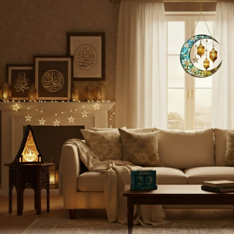 Made from premium acrylic with a stained-glass effect, this piece reflects the beauty of Islamic artistry. Perfect for Ramadan or everyday décor, adding warmth and serenity to any space.