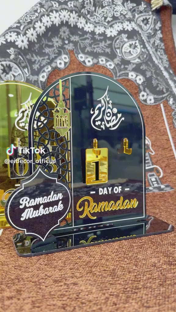 Ramadan Countdown - Perfect for your tabletop, this elegant decoration combines traditional ethnic motifs with a modern touch. The mirrored surface reflects the beauty of your surroundings, while the countdown feature adds excitement and anticipation to each passing day of Ramadan. Ideal for enhancing your home décor or as a thoughtful gift to loved ones, this piece embodies the spirit of the holy month with style and grace.